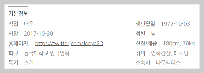 2017년은 안타깝지만 사랑하는 사람들을 떠나보낸 한 해로 아주 가슴 아픈 우리 모두에게 기억될 것 같습니다. 잘 지내고 계시겠죠. 저는 아직 그 미소가 잊혀지지 않습니다. 언제나 따뜻하게 배려해 준 인자함 또한 잊히지 않습니다. 미처 작별 인사도 하지 못했습니다. 너무도 갑작스럽게 날벼락같은 이별에 사실 지금도 가슴이 먹먹합니다. 정말 행복했던 추억들 간직하겠습니다. 그리고 아주 훌륭했던 영화인이셨던 것을 기억하겠습니다. 하늘에서 부디 아프지 마시고 평안하시길 바라겠습니다. 정말 많이 보고 싶고, 사랑합니다. 사랑해요 형.