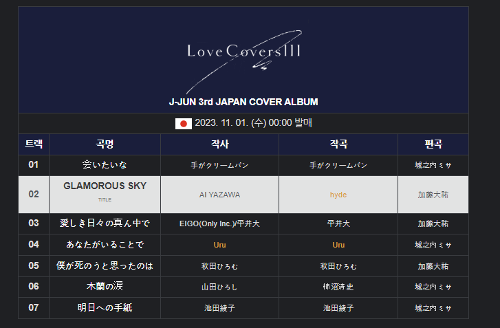 ✅ 3년 만에 발표한 'Love Covers III'에는 타이틀곡 'Gramorous Sky(글래머러스 스카이)'를 비롯하여 '보고 싶은 마음, 생각하는 마음'을 주제로 선택한 총 7곡이 수록되었습니다.
