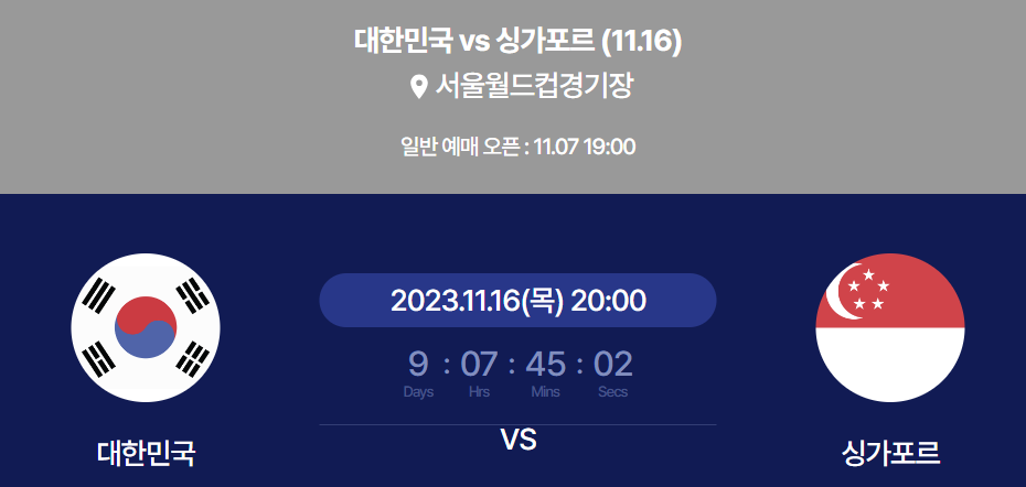 2023.11.04 - [축구] - 한국 싱가폴 아시아 2차예선 수험생 무료 티켓 예매 이벤트, 중계보기
