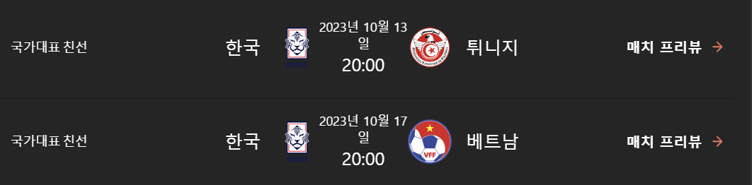 | 대한민국 베트남 평가전 축구 경기 중계보는곳, 10월 17일 (0) | 2023.10.15 |