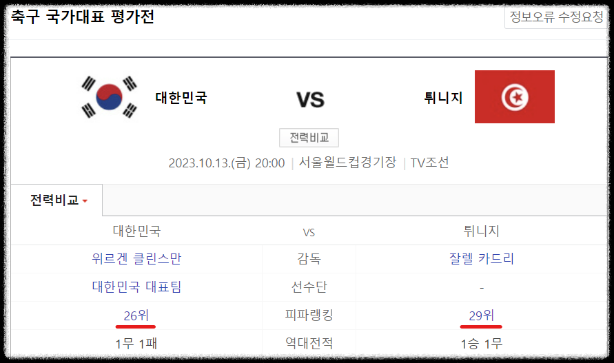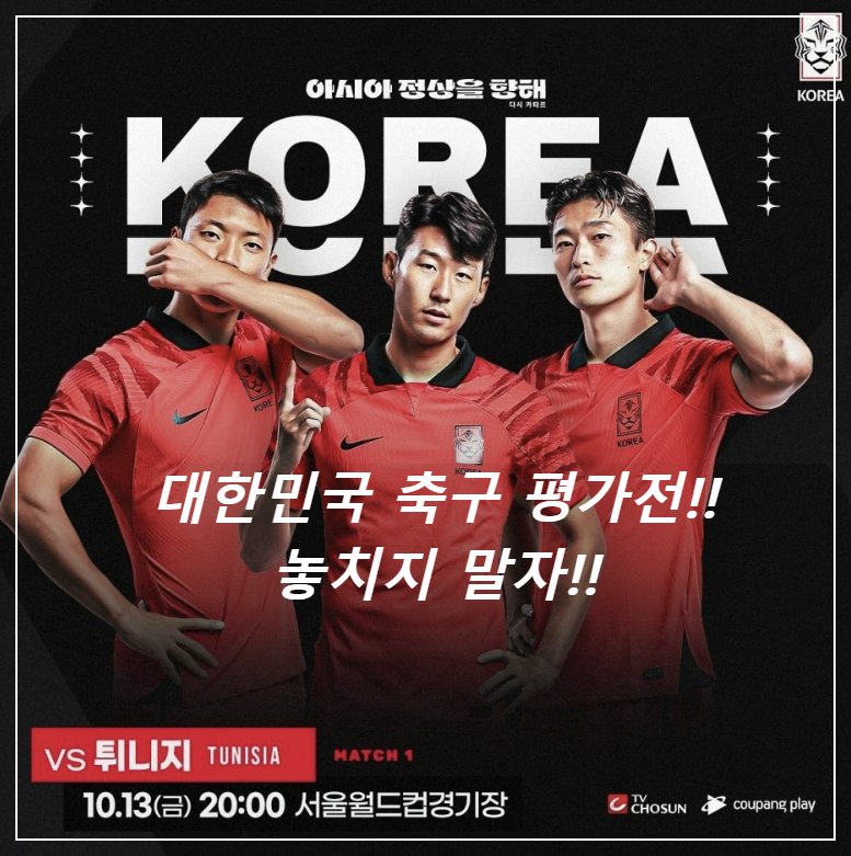 ✅ 대한민국 VS 튀니지 : 10월 13일 금요일 20시