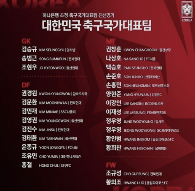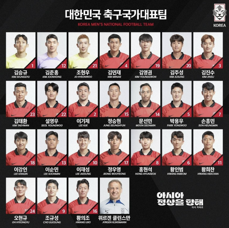이번 평가전에는 손흥민, 이강인, 김민재를 포함하여 황의조, 조규성 등 많은 주요 선수들이 포함되었다. 멤버가 화려하기 때문에 튀니지 정도는 쉽게 이기지 않을까 생각이 들긴 하지만 축구는 팀 스포츠이기 때문에 경기는 해봐야 알 것 같다. 개인적으로는 아시안게임에서 득점왕을 차지한 정우영이 이번 경기에서는 어떤 활약을 펼칠지 궁금하다.