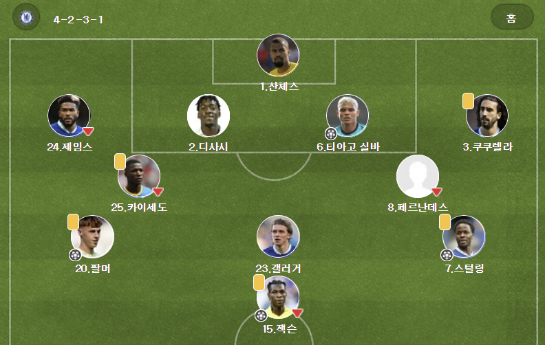 첼시는 산체스, 제임스, 디사시, 실바, 쿠쿠렐라, 엔조, 갤러거, 카이세도, 파머, 스털링, 잭슨이 선발로 나섰습니다.