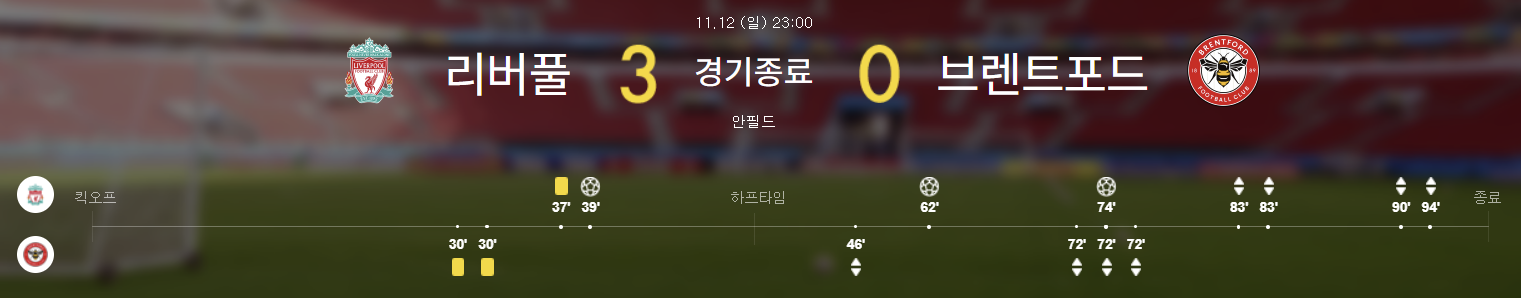 11월 12~13일 벌어진 프리미어리그 경기는 아주 재밌는 경기들이 많았습니다. 그 중에 리버풀은 최근 상승세를 보이던 브렌트포드와의 경기에서 3 대 0 완승을 거두며 리그 2위로 올라섰습니다. 그리고 이번 리그에 가장 빅매치였던 맨시티와 첼시의 경기는 팽팽한 접전끝에 무승부를 거두었습니다. 그럼 지금부터 경기 내용들이 어떠했는지 이야기하겠습니다.