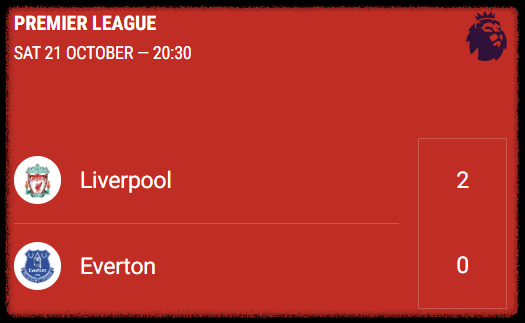 리버풀 클롭 감독은 후반 36분 디아스를 빼고 조 고메스를 투입하며 수비 강화를 통한 한골 지키기 전략을 돌입했다.에버턴은 오나나를 빼고 단주마를 투입하며 승점을 위해 한방을 노리려 하였다. 끌려간 에버턴은 수비만 할 수 없었다. 에버턴 션 다이치 감독은 후반 43분 세르미티까지 투입했다. 리버풀은 후반 45분 엘리엇의 왼발 중거리슛이 상대 수문장의 선방에 막혔다. 후반전 추가시간은 무려 9분이었다. 에버턴은 동점골을 위해 최전방으로 볼을 빠르게 전달했다. 또 높이를 이용한 세트피스에 모든 힘을 쏟았다. 리버풀은 후반전 추가시간에 쐐기골을 노렸지만 결정력이 아쉬웠다. 소보슬라이의 결정적인 슛이 골대를 벗어났다. 리버풀은 후반전 막판, 역습에서 살라가 한골을 추가하며 쐐기골을 터뜨렸다. 리버풀이 2대0 승리했고 살라는 이번 시즌 리그 7호골로 득점 2위로 올라섰다.