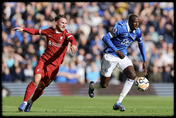 리버풀은 이런 에버턴을 상대로 좌우를 시원하는 갈라주는 롱패스를 자주 찔러넣으며 기회를 엿봤고 리버풀은 전반 12분 결정적인 역습 과정에서 디아스의 슈팅이 상대 수비수 영의 태클에 걸려 아쉬움이 컸다. 끝까지 포기하지 않고 달려와 수비를 펼친 영의 육탄방어가 통했다. 리버풀은 전반 17분 역습 상황에서도 상대 오나나의 태클에 걸려 득점으로 연결하지 못하며 연달아 득점 기회를 살리지 못했다. 리버풀은 전반 21분 조타가 드리블 돌파로 좋은 위치에서 프리킥을 유도했다. 알렉산더 아놀드가 오른발로 프리킥을 찼지만 상대 벽에 막혔다. 리버풀은 전반 27분 살라의 왼발 중거리슛이 골대 살짝 위로 날아갔다.