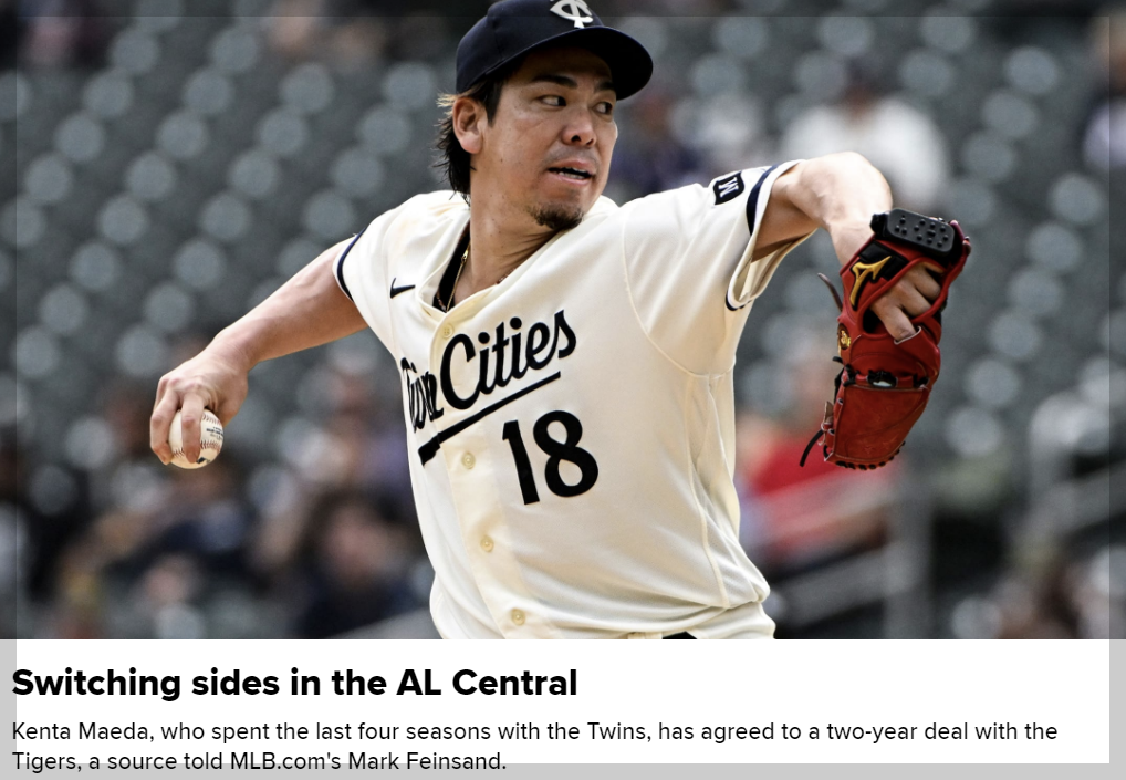 ✅ 과거 류현진과 로스앤젤레스 다저스에서 함께 뛰었던 일본 출신 오른손 투수 마에다 겐타(35)가 미국프로야구 메이저리그(MLB) 디트로이트 타이거스에서 선수 생활을 이어가게 됩니다. 마에다는 디트로이트와 2년 계약에 합의했으며 2년 총액 2천400만 달러(약 313억원) 수준이라고 알려졌습니다.