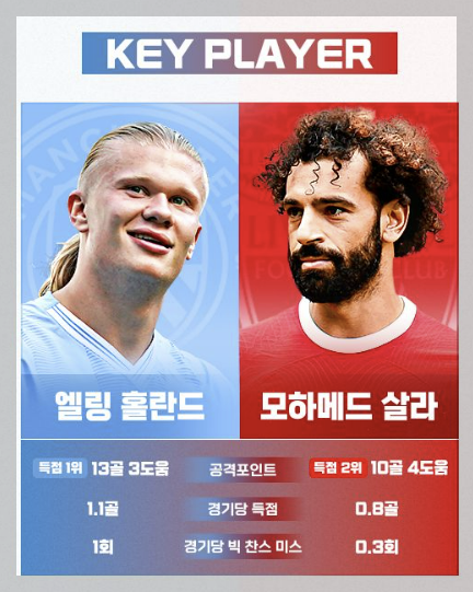 현재 1위의 맨시티, 2위의 리버풀! 과연 이번 라운드에서 순위변동이 일어날 수 있을까요? 이번 국대 경기에서 홀란드는 부상이 의심되어 출전을 하지 않았다고 했는데 리그 경기에서는 뛸 수 있을지 의문입니다.