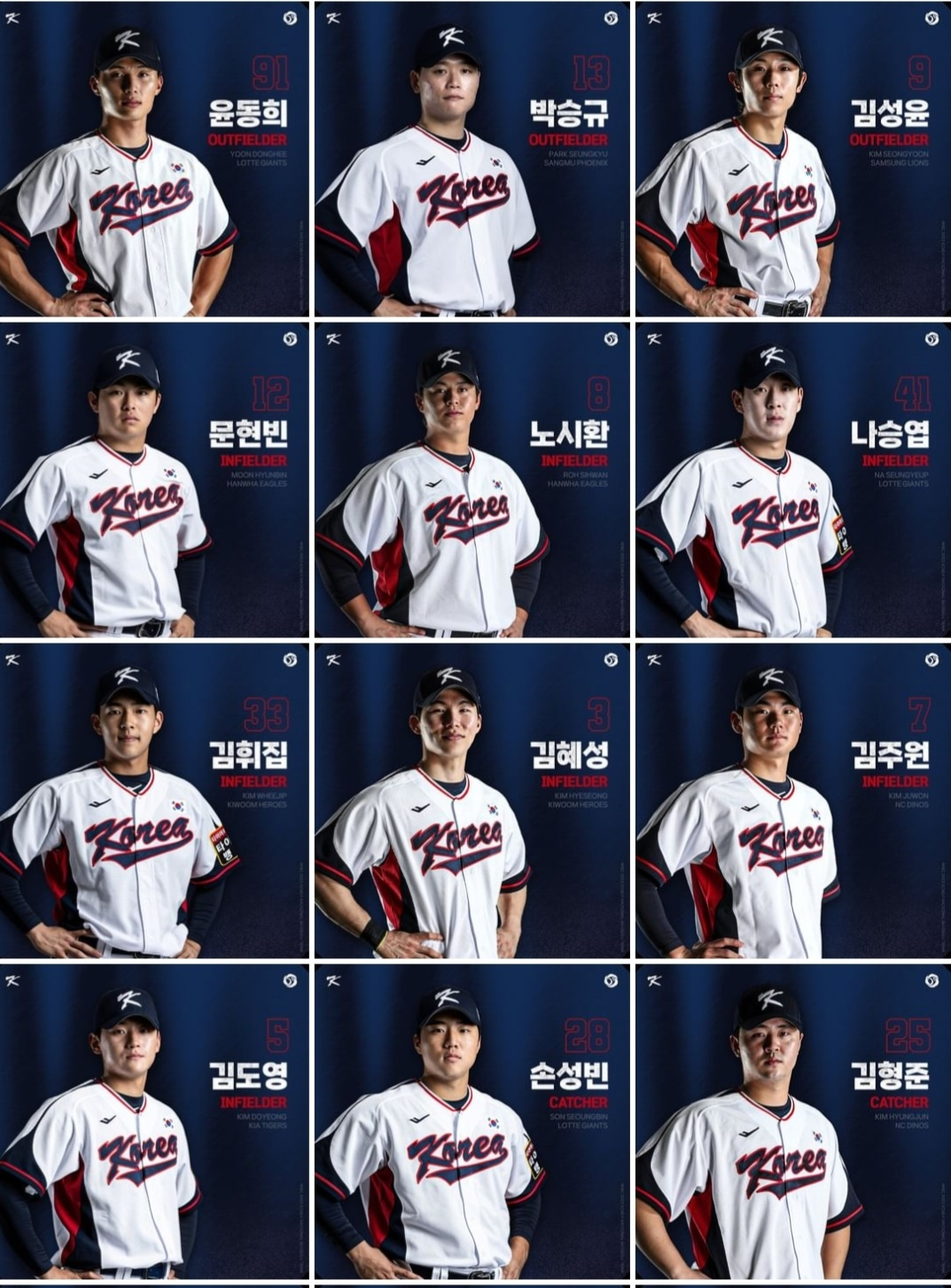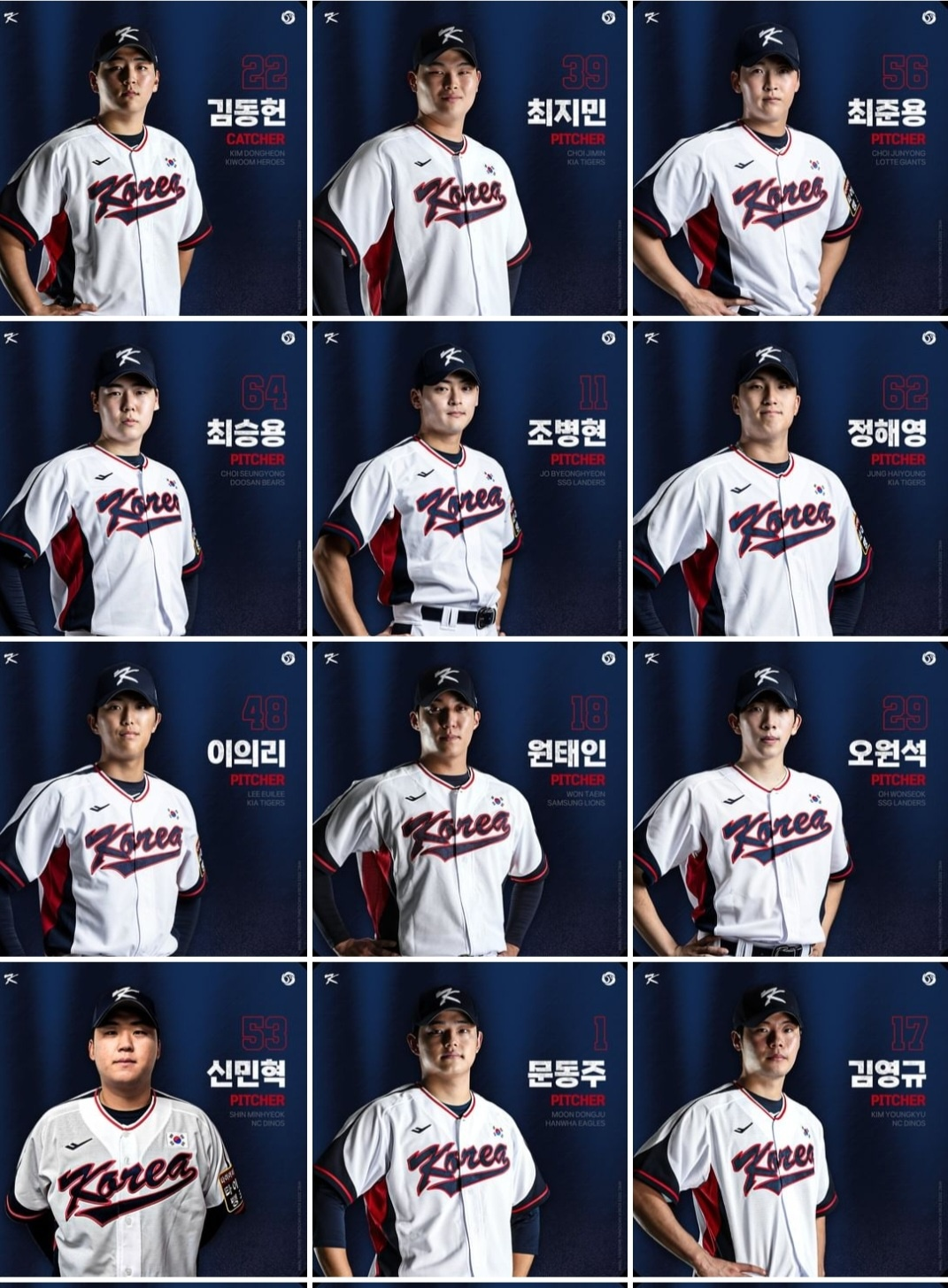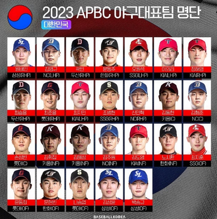 ➡️ 투수(12명) : 김영규, 신민혁(이상 NC), 이의리, 정해영, 최지민(이상 KIA), 원태인(삼성), 곽빈, 최승용(이상 두산), 문동주(한화), 최준용(롯데), 오원석, 조병현(이상 SSG)