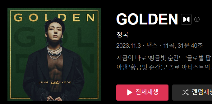 이어서, 영국 오피셜 차트에서는 앨범 차트에서 3위에 진입하여 역대 K-팝 솔로 가수 음반 중 가장 높은 순위를 기록했습니다. '골든'은 정국의 탁월한 음악 센스와 팬들의 열광적인 지지로 전 세계 음악 시장을 휩쓸고 있습니다.