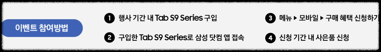 첫 번째로 소개해드릴 프로모션은 갤럭시 Tap S9 제품과 관련된 프로모션입니다. 해당 기간내에 제품을 구매하고 구매 혜택을 신청하면 여러가지 사은품을 받을 수 있습니다.
