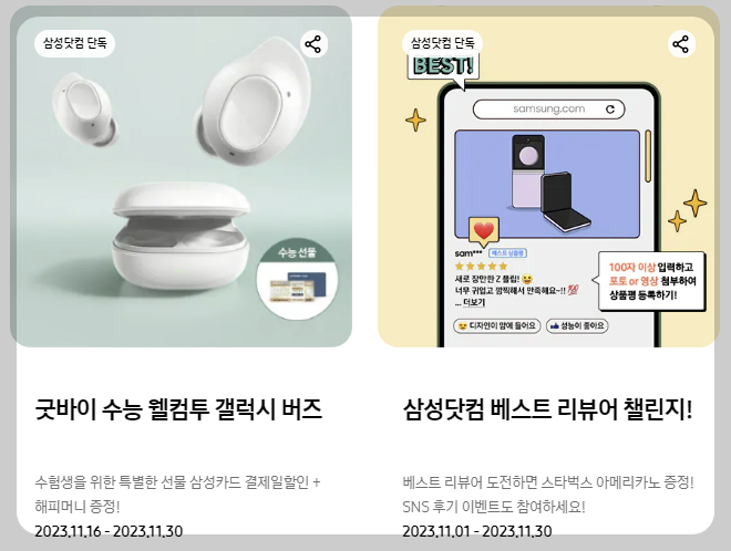 위의 이벤트 외에도 수능 수험생을 위한 여러가지 이벤트, 혜택 들이 삼성전자에서 펼쳐지고 있습니다. 따라서 삼성전자 홈페이지에 접속하여 본인에게 맞는 제품에 대한 혜택을 자세히 확인해야 할 것 같습니다. 그래서 이 기회를 놓치지 않고 손해를 보는 일이 없도록 해야 하겠습니다. 감사합니다.