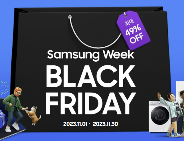 📌 또한 온라인 브랜드숍인 삼성닷컴에서 냉장고, 세탁기 등 2개 품목 이상을 동시에 구매하면 기준가 대비 최대 47% 싸게 살 수 있는 ‘삼성 위크 블랙 프라이데이’ 행사도 오는 30일까지 진행합니다.
