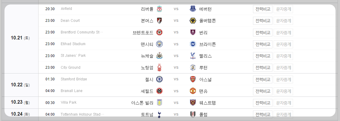 다음 라운드의 일정은 바로 10월 21일 토요일부터 시작될 예정입니다.