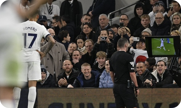 첼시도 반격을 시작했습니다. 전반 20분 라힘 스털링의 골이 핸드볼 반칙으로 노골 선언을 받았지만 토트넘을 위협하는 장면이 이어졌습니다. 전반 27분에는 모아세스 카이세도의 슛이 또 토트넘의 골망을 흔들었지만 오프사이드 여부로 VAR을 실시했습니다. 여기서 토트넘의 수비수 크리스티안 로메로가 페널티박스 안에서 공을 걷어내는 과정에서 상대 스털링의 발목을 밟는 거친 태클을 시도한 장면이 나와 레드카드를 받았습니다. 첼시는 콜 팔머가 페널티킥을 성공해 승부를 원점으로 돌렸습니다. 그 이후에 토트넘에 악재가 이어졌습니다. 중앙수비수 판 더 펜이 햄스트링 부상을 당했고 공격의 핵 제임스 매디슨도 발목에 불편함을 느꼈습니다. 결국 둘은 나란히 전반 추가시간 호이비에르. 에메르송 로얄로 교체됐습니다.