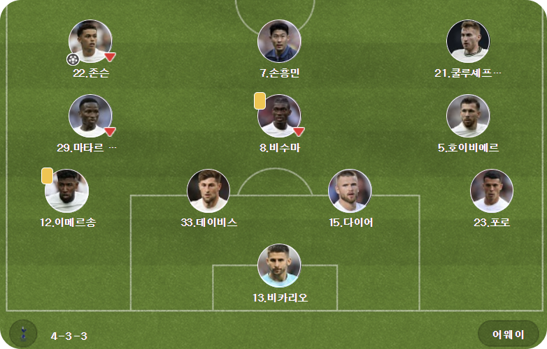 📌토트넘(원정) : 4-2-3-1