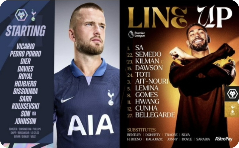 ✅ 토트넘 vs 울버햄튼 선발 라인업