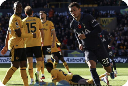 손흥민과 황희찬은 전반전엔 득점을 하지 못하였습니다. 토트넘은 이른 시간인 3분에 포로가 문전에 낮고 빠른 오른발 크로스를 보냈고 브레넌 존슨이 왼발로 득점하여 리드를 가져갔습니다.