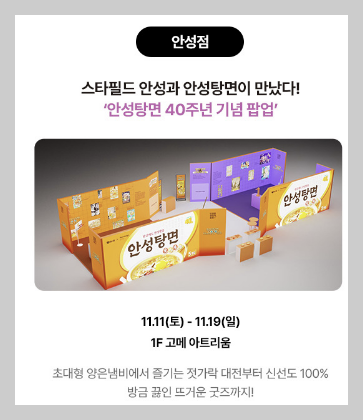 📌 안성점 : 안성탕면 40주년을 기념하여 젓가락부터 양은냄비까지 여러가지 굿즈를 선보일 예정입니다.