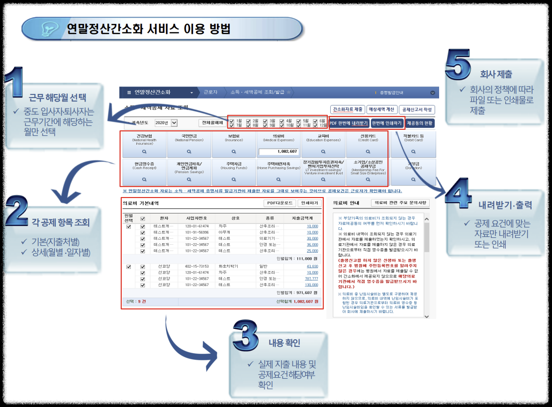 근로자가 간소화 자료 제공 동의만으로 국세청이 간소화자료를 회사에 직접 일괄 제공하는 서비스, 이를 통해 연말정산 절차가 단축되며 근로자의 자료 수집이나 보관을 위한 비용 절감 및 보다 편리한 연말정산을 할 수 있게 되었습니다.