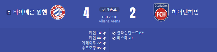 ✅ 분데스리가 11라운드 바이에른뮌헨 VS 하이덴하임