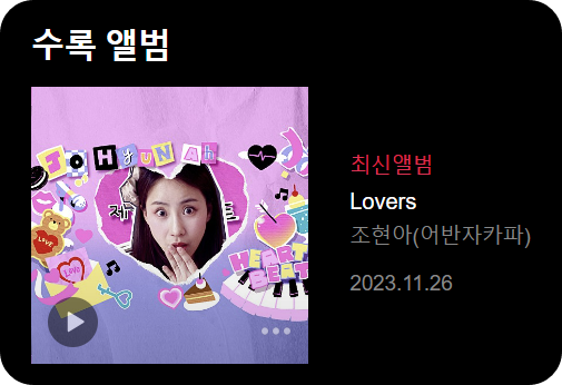 ✅ 이번 신보는 조현아와 제일기획의 유튜브 채널인 ‘채널일’과의 협업을 통해 선보이는 프로젝트 음원입니다. 또한 조현아가 직접 작사, 작곡, 편곡하였습니다. 채널일의 ‘조현아의 하트비트’란 프로그램에 출연하며 얻은 다양한 감정과 음악적 영감으로 만들어진 이번 신곡 ‘Lovers’는 지난 22일 ‘채널일’을 통해 라이브 동영상이 공개되면서 많은 관심을 받았습니다.