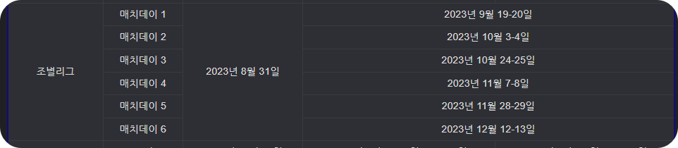 📌 조별리그의 남은 매치데이 5, 6경기는 각각 11월 28~29일, 12월 12~13일날 펼쳐집니다. 그 이후에 결선토너먼트가 조추첨이후에 내년 2월 13~14일을 시작으로 시작됩니다.