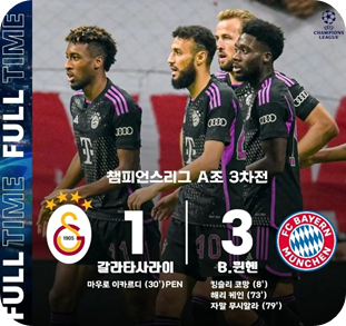 📌 바이에른 뮌헨의 김민재 풀타임 출전하여 3 대 1로 갈라타사라이에 승리