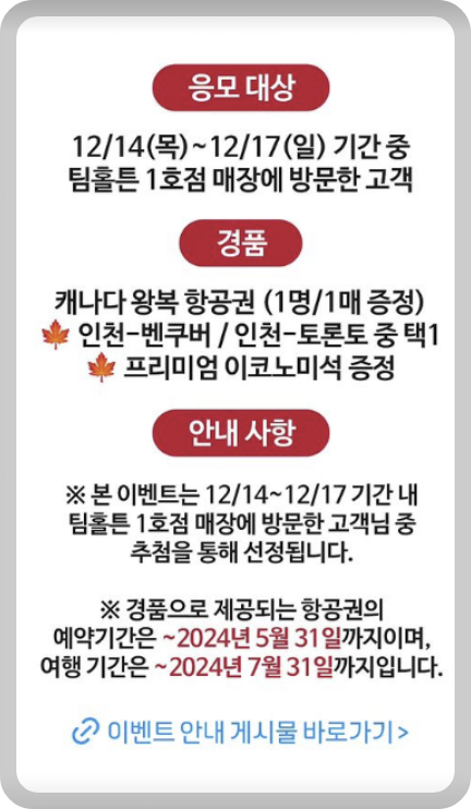 ✅ 캐나다 왕복 프리미엄 항공권 추첨