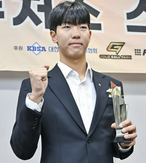 이러한 모습을 바탕으로 황준서는 2024 신인드래프트에서 전체 1순위로 한화에 부름을 받았습니다. 이번 2023 퓨처스 스타대상에서는 인천고 김택연(두산 베어스 지명), 마산용마고 장현석(LA 다저스 입단) 등 쟁쟁한 경쟁자들을 제치고 영예의 대상을 수상했습니다. 황준서는 트로피와 함께 300만원 상당 스포츠용품 교환권을 받았습니다.