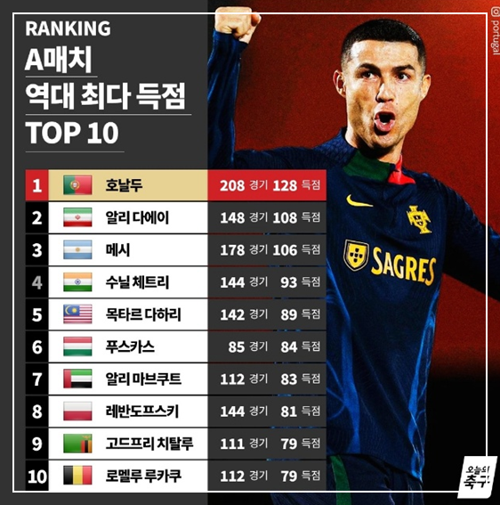 앞으로 호날두가 과연 얼마나 A매치 경기를 뛰면서 득점 기록을 어디까지 늘릴 수 있을지 보는 것도 참 흥미로운 일이 될 것 입니다. 그리고 언젠가 이 기록이 누구로 인해 깨지게 될까요?