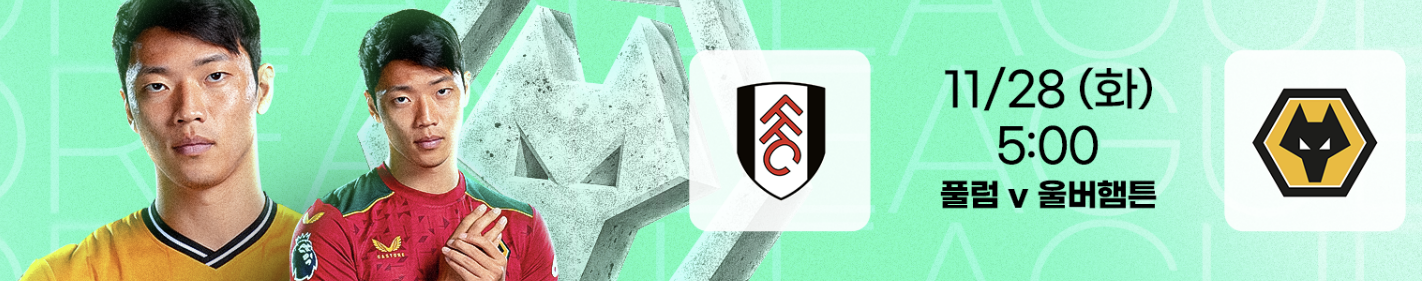 | 11.28.(화) | 05:00 | 풀럼VS울버햄튼 | 프리미어리그 |