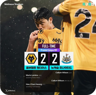 ✅ 경기결과 : 울버햄튼 2-2 뉴캐슬