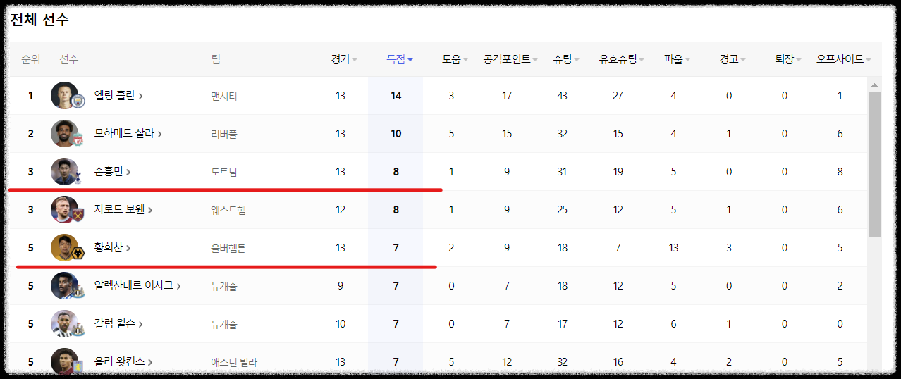 📌 또한 곧 12월 말에 프리미어리그 박싱데이가 펼쳐질 예정이기 때문에 황희찬은 지금과 같은 폼을 잘 유지하며 체력적인 부분과 부상에 주의해야 할 것입니다.