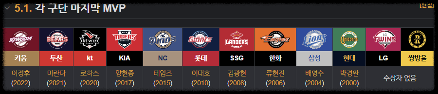 ✅ 각 구단별 마지막 MVP