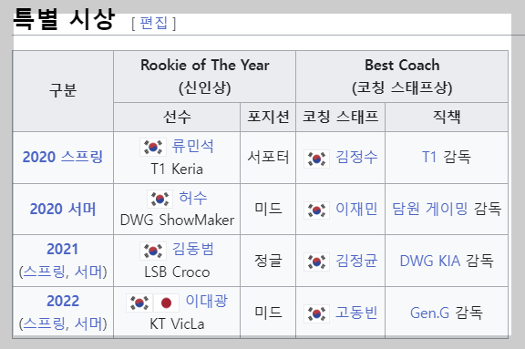 지난 해에는 ‘제카’ 김건우가 ‘LoL 월드 챔피언십’에서 인상적인 활약을 펼친 덕분에 올해의 선수상을 수상했습니다. 이정훈 LCK 사무총장 및 한국 LoL e스포츠 총괄은 “2023년 LCK 스프링과 서머는 물론, 한국에서 5년 만에 열린 LoL 월드 챔피언십에 보여주신 팬들의 엄청난 성원 덕분에 LCK는 또 한 번 세계 최고의 리그라는 평가를 받을 수 있었다”라며 “최고의 활약을 펼쳐준 선수들과 팀들을 모시고 팬 여러분과 함께 올해 LCK 어워드를 진행할 수 있게 돼 매우 기쁘다”라고 말했습니다.