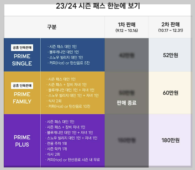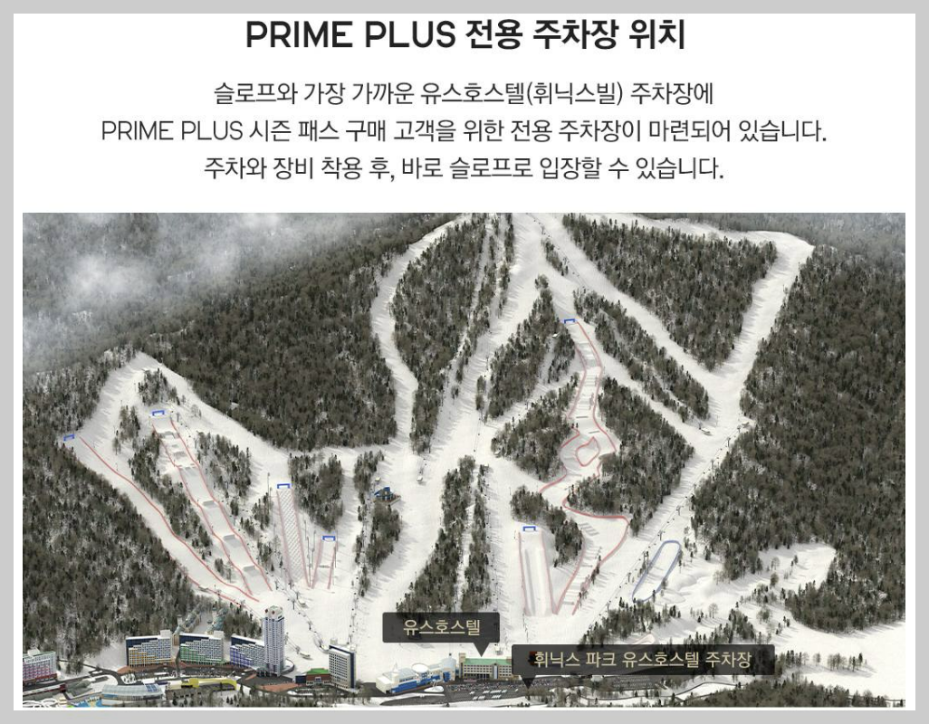 시즌패스에 차별화 포인트를 많이 추가한 휘닉스파크입니다. 프라임 플러스 자녀 1+1 혜택에 전용주차장, 시즌 락카까지 포함되어 있으며 겨울 메가 엑티비티 시즌 내 무료로 제공이 됩니다. 그리고 휘닉스파크는 다른 곳보다는 가장 빨리 오픈을 하며 가장 늦게 폐장을 하는 곳입니다. 18개 전체 슬로프도 오픈되니 실력별로 나뉜 쾌적한 슬로프를 이용할 수 있습니다.