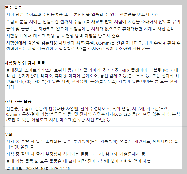 수능을 보시는 분들은 이미 다 잘 알고 있겠지만 미리 다시 한번 확인하는 것도 좋을 것 같습니다.