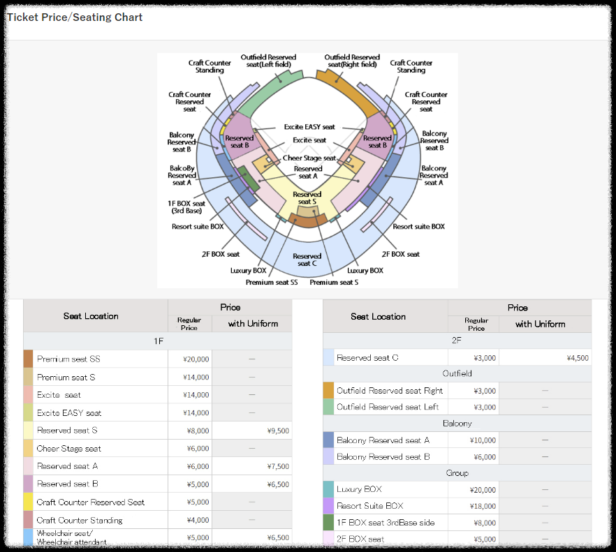 현장에서 관람을 원하시는 분은 아래의 링크를 통해 티켓을 구매하실 수 있습니다. 바로 아래는 좌석과 티켓 가격인데 자세한 사항은 홈페이지에서 더 확인하실 수 있습니다.