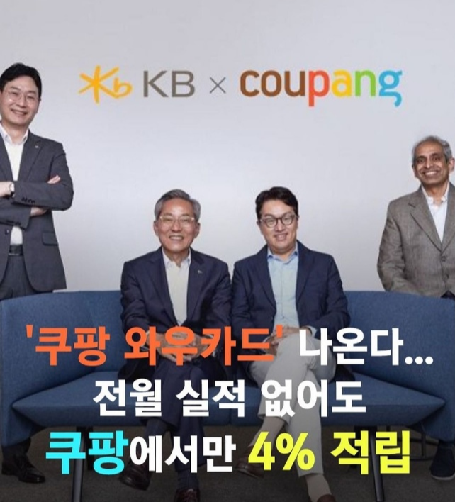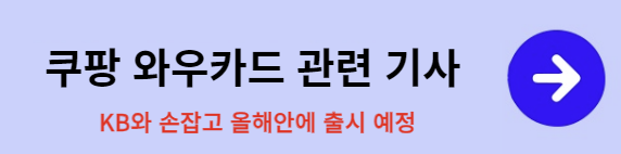 대한민국 대부분의 사람들이 사용하는 쿠팡, 쿠팡이 KB 국민카드와 손을 잡고 올해 안에 '쿠팡 와우카드' 출시를 앞두고 있습니다. 쿠팡 와우카드는 오직 와우 회원만이 가입할 수 있는 제휴카드로 쿠팡 뿐 아니라 모든 온오프라인 가맹점에서 사용하더라도 업계 최고 수준의 캐시를 되돌려 준다고 합니다.