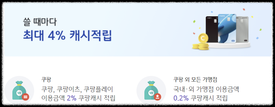 📌 쿠팡에서 4% 적립 혜택 : 기본 2% + 추가 프로모션 2% / 월 4만원 한도가 있음