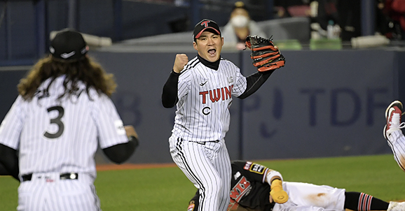 2-2로 팽팽했던 경기는 마지막 이닝에서 승부가 갈렸습니다. 9회 kt가 웃었습니다. 선두타자 박병호가 바뀐 투수 고우석에게 유격수 땅볼로 잡혔고 장성우까지 좌익수 뜬공으로 물러나며 2아웃에 몰렸습니다. 하지만 배정대가 9구 접전 끝에 볼넷으로 출루했고 문상철이 왼쪽 펜스를 직격하는 큼지막한 타구를 날렸습니다. 1루에 있던 배정대는 3루를 돌아 홈까지 파고들어 득점에 성공했습니다. 리드를 잡은 9회말 kt는 박영현을 투입했습니다. 선두타자 문성주를 투수 앞 땅볼로 처리했고 후속타자 신민재까지 2루 땅볼 처리했습니다. 그리고 홍창기까지 삼진처리하며 승리를 지켜냈습니다.