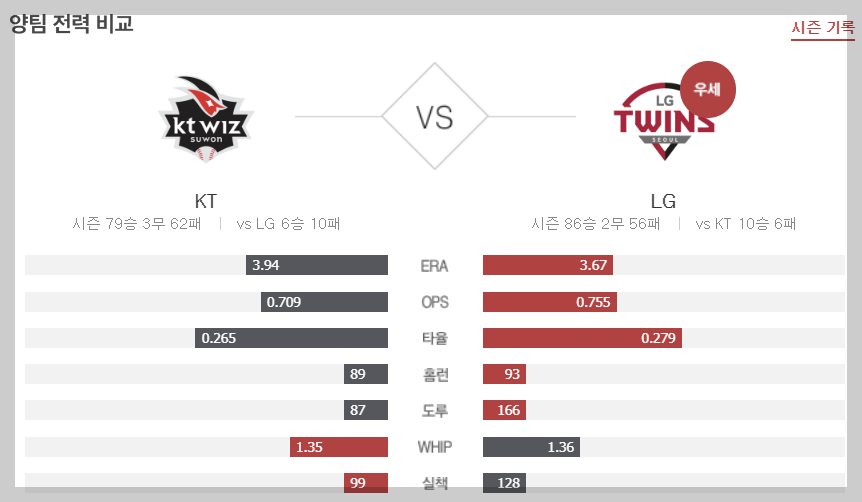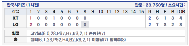 1. 경기 선발 및 결과(LG 대 KT)