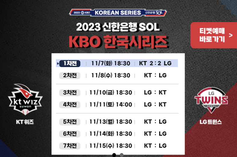 | LG KT 한국시리즈 티켓 입장권 예매 일정 방법, 한국시리즈 예측 (0) | 2023.11.06 |