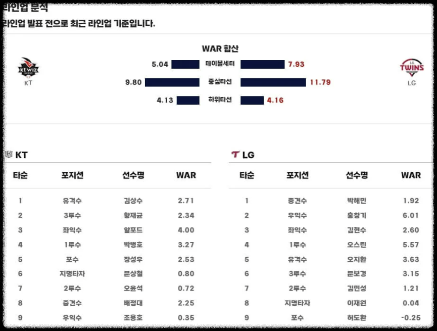 ✅ 주요 타자 라인업