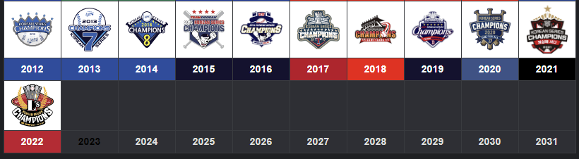 📌 이번 한국시리즈 이전에 과연 역대 한국시리즈 우승팀은 어디였는지, 어느 팀들이 주로 우승했는지 확인해봅시다.