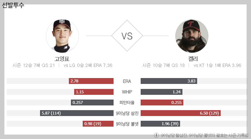 1. 선발 투수 (켈리 VS 고영표) 및 승부 예측