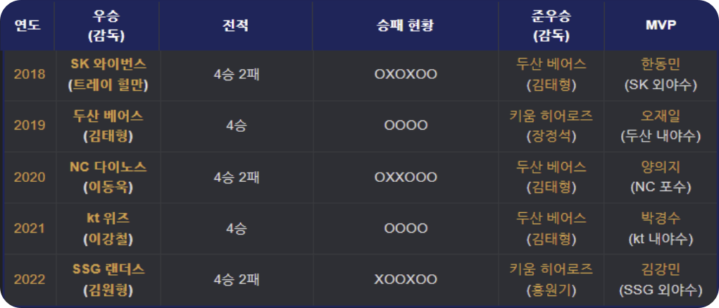 3. 역대 한국시리즈 우승팀 및 최근 5년 우승팀