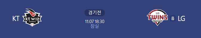 | 11월 7일(화) | LG VS KT | 잠실종합운동장 | 18시 30분 | SBS |